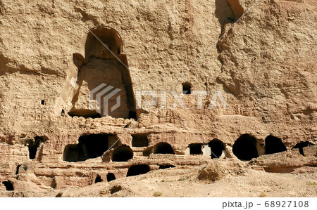 Bamyan (Bamiyan) in Central Afghanistan. This is a view over the Bamyan (Bamiyan) Valley showing the large Buddha niche in the cliff. The Buddhas were destroyed by the Taliban. UNESCO site Afghanistan