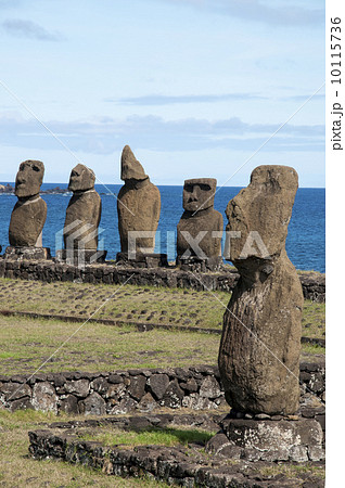 南太平洋のイースター島 タハイ遺跡のモアイ アフバイウリ