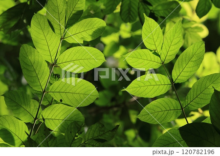 自然 植物 カエンボク、葉は羽状複葉。小葉は対生で十センチ前後、多い場合は九対ほども連なります