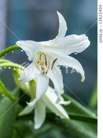 雨に濡れた白いアフリカハマユウ(クリナム)