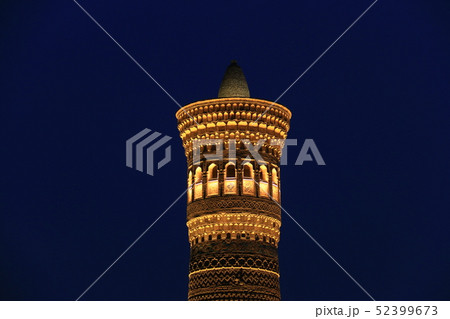中央アジア シルクロードの旅 ウズベキスタン ブハラの夜 カラーン・ミナレットのライトアップ