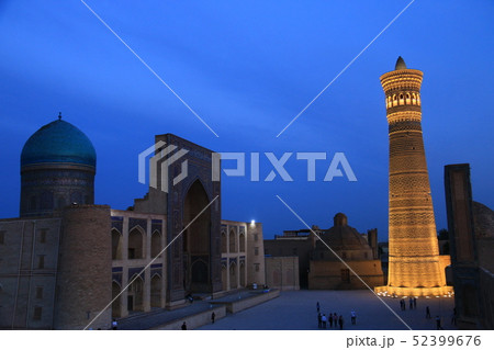 中央アジア シルクロードの旅 ウズベキスタン ブハラの夕暮れ カラーン・ミナレットのライトアップ