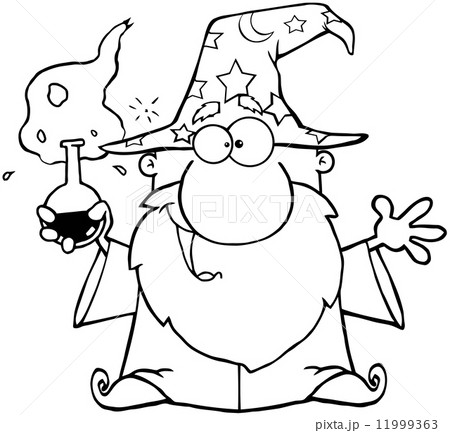 Outlined Crazy Wizard Holding A Magic Potion