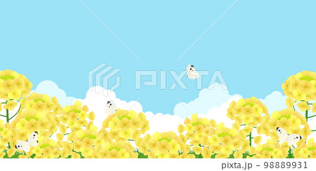 背景素材 菜の花 蝶 モンシロチョウ(ギンガムチェック)