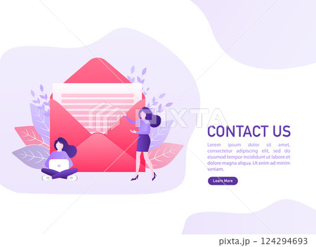 Contact us envelope people. Landing page. Modern advertising for concept design. Online communication. Digital marketing illustration. Customer service.