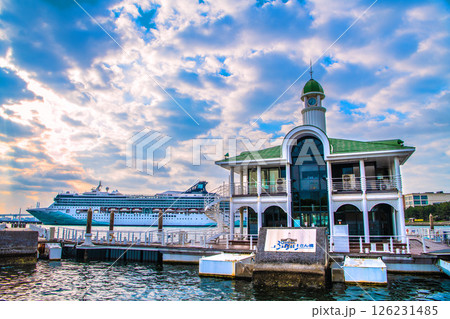 日本の横浜都市景観ノルウェージャン・スピリットやぷかりさん橋などを望む