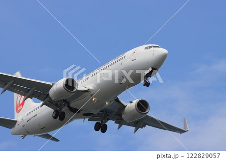 着陸進入する旅客機 国際線 国内線 ジェット機