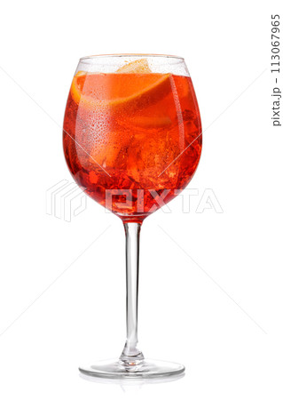 Aperol spritz cocktail with orange slice and ice isolated