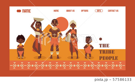African native family tribe people, vector illustration. Travel agency website design, exotic tours