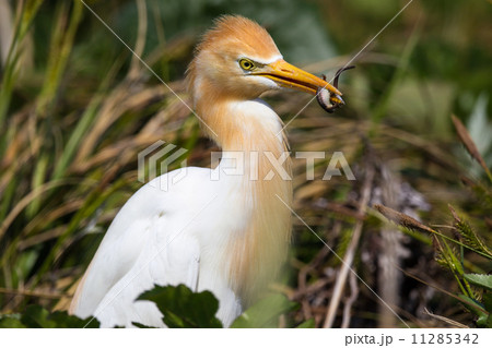 餌を獲るアマサギ