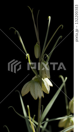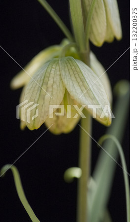 黒バックにクリーム色のバイモユリの花