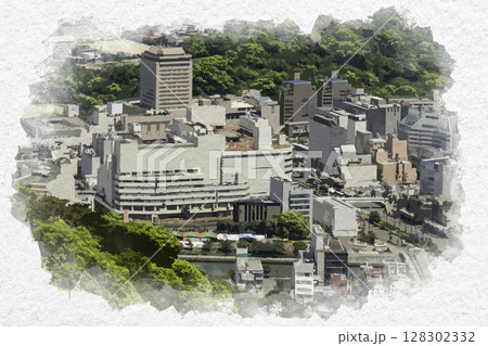 水彩画風 徳島市街地 徳島駅周辺 徳島県徳島市