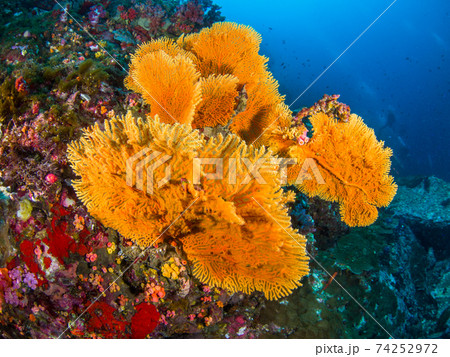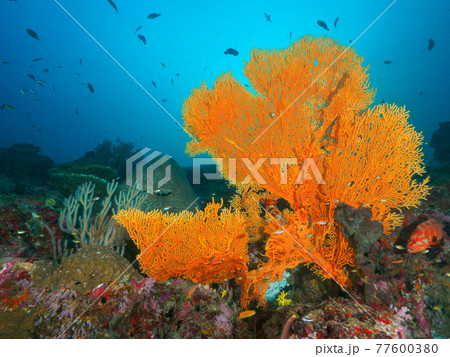 ウミウチワとソフトコーラル (ボン島、シミラン海洋国立公園、タイ王国)
