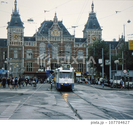 アムステルダム中央駅前を行く路面電車 アムステルダム オランダ