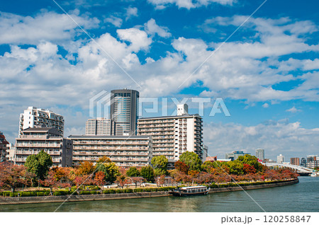 大阪市北区天満橋 桜宮公園から見る大川と大阪アメニティパーク