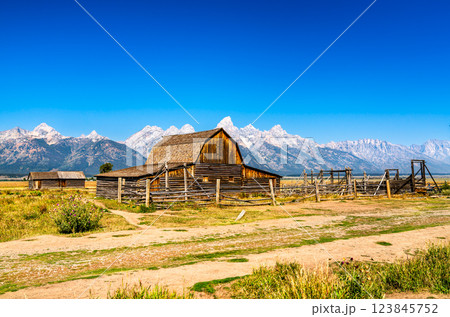 John Moulton barn at Mormon Row in Grand Teton National Park in Wyoming, United States