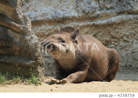 うずくまり日光浴をするアメリカバク