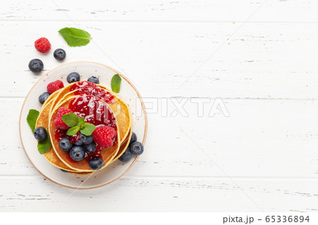 Delicious homemade pancakes with summer berries