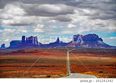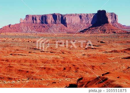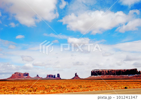 コロラド高原 USハイウエイ163号線から遠望するモニュメント・バレーの岩石丘
