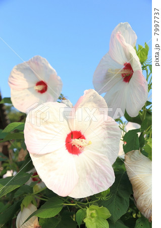 青空に映える真っ白なアメリカフヨウ