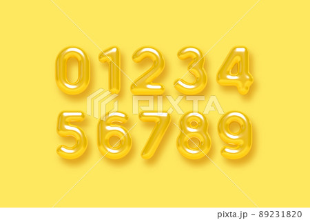Summer yellow number vector set. 3d realistic glossy typeface. Decorative numbers for banner, cover, birthday or anniversary, summer holiday party.