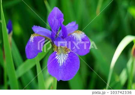 美しく垂れた花びらのハナショウブ 除夜の鐘1