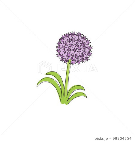 Single continuous line drawing beauty fresh allium giganteum for home decor wall art poster print. Decorative globemaster flower for floral card frame. Modern one line draw design vector illustration