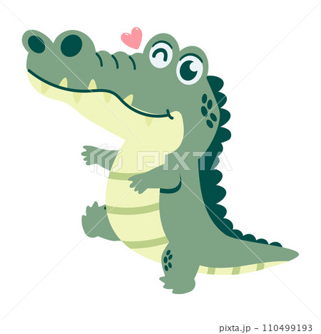 Cute crocodile. Childish alligator characters, child animal reptile flat funny green crocodiles gator stickers, happy alligators animals in different poses. Vector crocodiles set