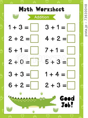 Math worksheet for kids. Addition. Matematic activity page with a cute alligator