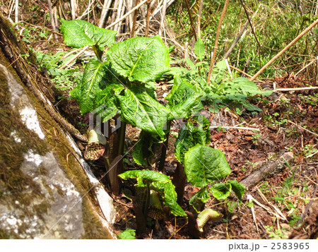 珍しい野草・蝮の斑紋に似ているとされる斑模様が刻まれて伸びるマムシグサの長い偽茎・縦位置