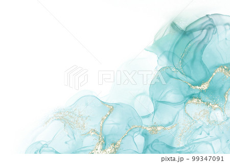 背景 テクスチャ アルコールインク 水彩 アート ラメ グリッター 金粉 青 エメラルドブルー