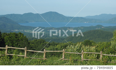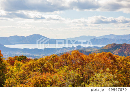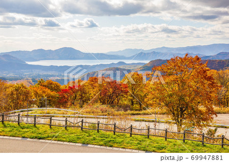 秋田仙北の秋 紅葉の田沢湖高原 アルパこまくさから田沢湖を望む