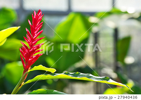 ハワイ南国リゾートの象徴 緑に映える赤い南国花レッドジンジャー 美容系、リゾート・広告デザイン向け