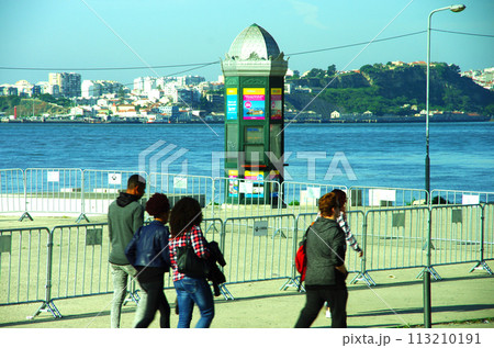 リスボンの海岸通りに立つ広告塔