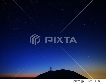 春の明け方、星空に向かって立ち上る浅間山の噴煙(20250405042222)