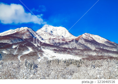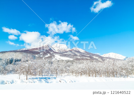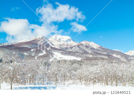 冬の晴れた日の妙高高原いもり池から見た妙高山 (妙高市)