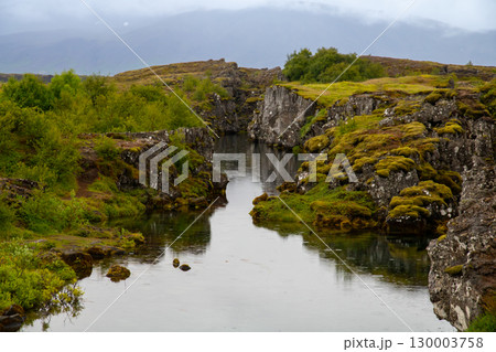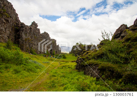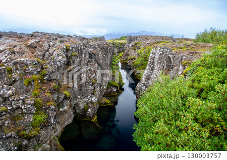 北欧の島国アイスランド ギャオと呼ばれる地球の割れ目がある世界遺産シンクヴェトリル国立公園の景色