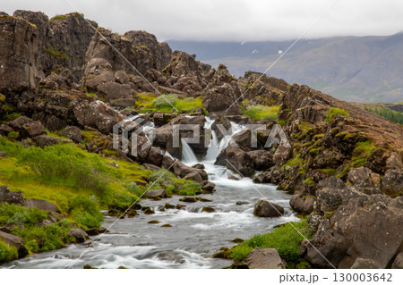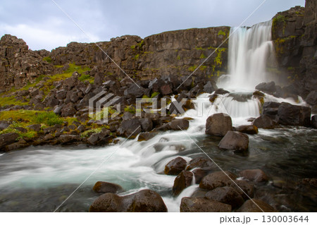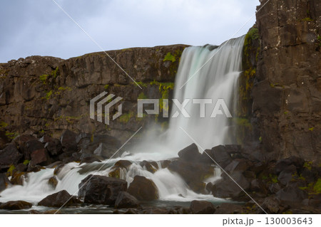 北欧の島国アイスランド ギャオと呼ばれる地球の割れ目がある世界遺産シンクヴェトリル国立公園の滝