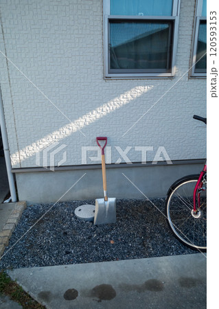 庭に置かれた雪かきスコップ