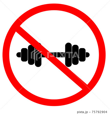 no used barbell sign. dont get dumbbell for gym sport. stop bodybuilding symbol. flat style. prohibiting sign for fitness.