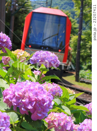 箱根登山鉄道とあじさい