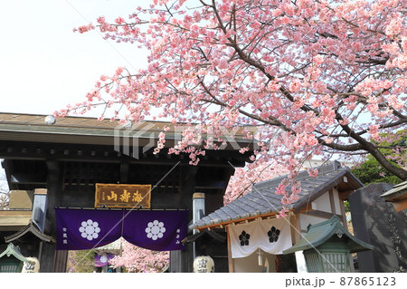 密蔵院 山門と安行桜 (埼玉県川口市安行原)