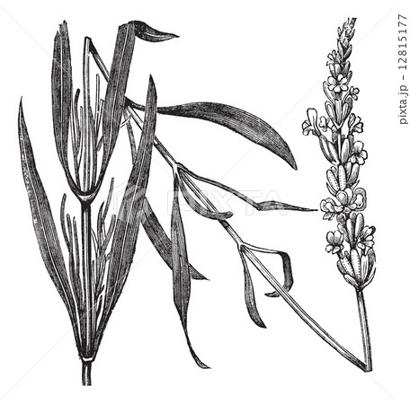 Common Lavender or Lavandula angustifolia, vintage engraving