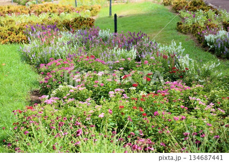 夏の花壇のアンゲロニア
