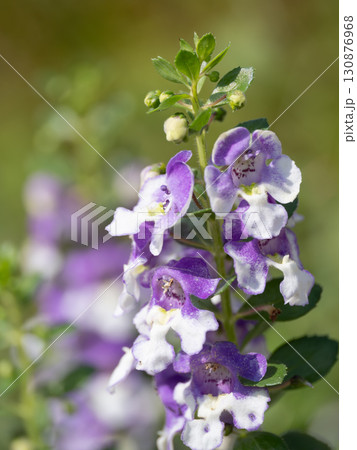 夏の花壇のバイカラーのアンゲロニア
