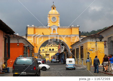 中米グアテマラサカテペケス県の世界遺産の街アンティグア カラフルな街並み