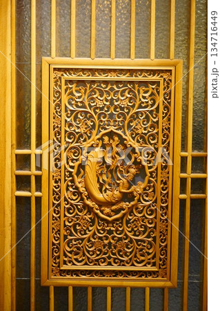 城下町の古い町並み 古民具 工芸品を売る店先 梵鐘(釣鐘)の龍頭
