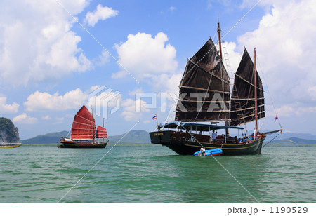 パンガー湾に浮ぶ2艘のアンティーク帆船