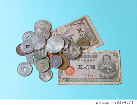 白い背景で撮った 少し古い世界のお金シリーズ 日本 円