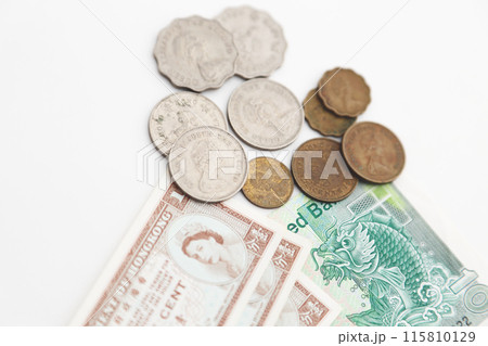 白い背景で撮った 少し古い世界のお金シリーズ 香港ドル